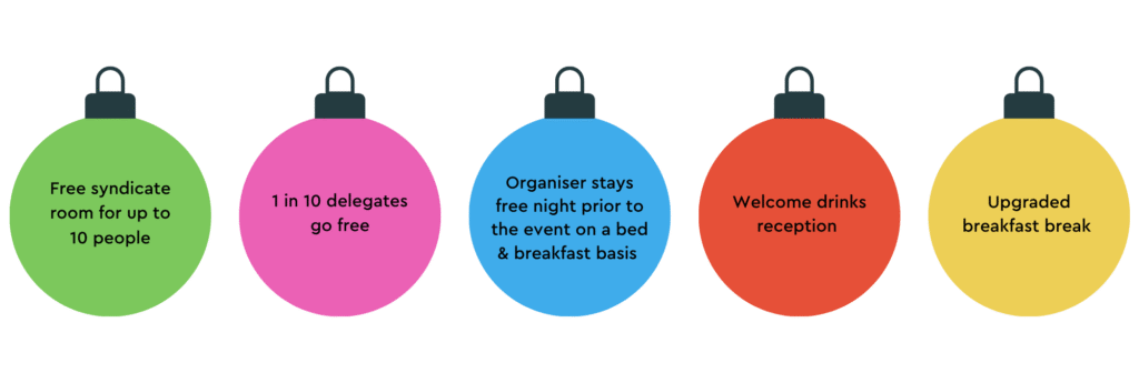Terms and Conditions: One treat per new booking over £1,000. Two treats per new booking over £5,000. Valid on new bookings made before 28th February 2026, excluding weddings and Christmas parties. Minimum 50 attendees per social event. Bookings must take place during promotional period. Quote ‘PICK’ on confirmation to qualify. All incentives are subject to availability and choices must be confirmed by the venue.